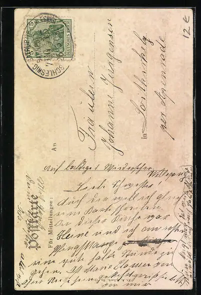 alte Ansichtskarte, gelaufen 1908, Eckknick oben re., guter Zustand