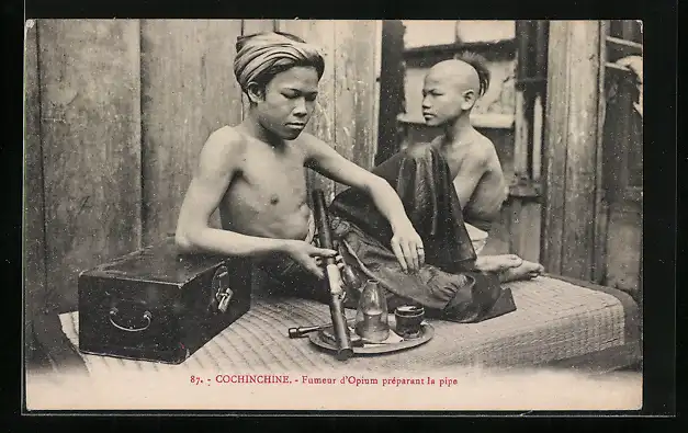 AK Tonkin, Fumeur d`Opium préparant la Pipe