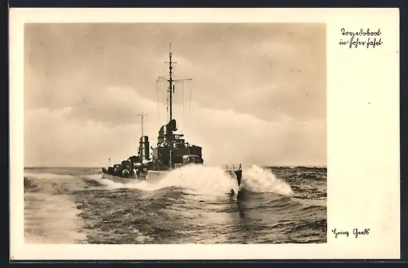 AK Topedoboot in hoher Fahrt, Kriegsmarine