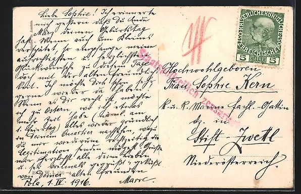 ungelaufen, Rückseite beschrieben 1916, guter Zustand