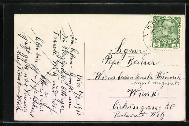 alte Ansichtskarte, gelaufen 1911, Stempelspur, guter Zustand