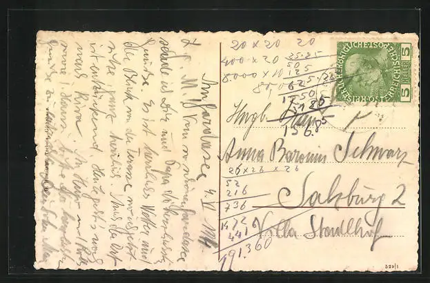 alte Ansichtskarte, gelaufen 1914, minimale Einrisse li. unten, guter Zustand