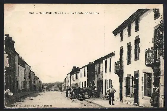 AK Torfou, La Route de Nautes avec bâtiments et passants