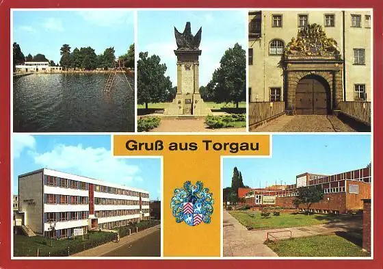 5 Abb., Strandbad, Denkmal der Begegnung, Schloß Hartenfels, Friedrich-Wolf-Oberschule, Volksschwimmhalle
