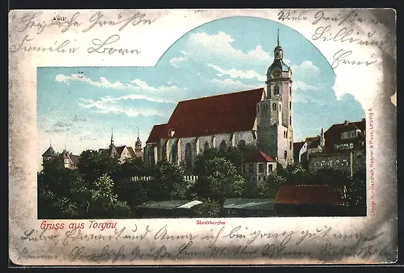 AK Torgau, Ortspartie mit Stadtkirche