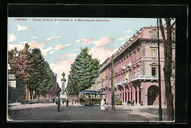 AK Torino, Corso Vittorio Emanuele II. e Monumento omonimo, Strassenbahn