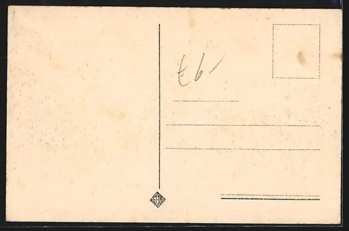 Personenbezogene Daten auf der Rückseite der Karte wurden durch blauen Textmarker unkenntlich gemacht. Die blauen Stellen sind auf die Vorderseite durchgeweicht und wirken sich negativ auf das Postkartenfoto aus
