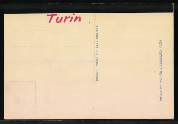 Personenbezogene Daten auf der Rückseite der Karte wurden durch blauen Textmarker unkenntlich gemacht. Die blauen Stellen sind auf die Vorderseite durchgeweicht und wirken sich negativ auf das Postkartenfoto aus