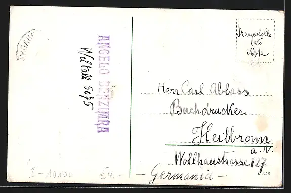 gelaufen 1920, Eckknicke li. oben u. re. unten, Ecken bestoßen, guter Zustand