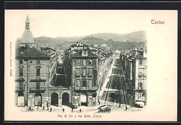 AK Torino, Via di Po e via della Zecca, Strassenbahn