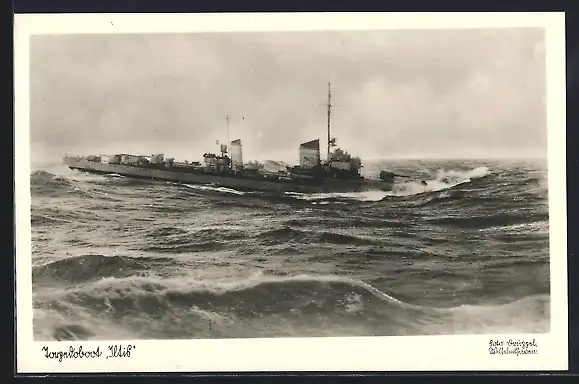 AK Torpedoboot Iltis in rauher See, Kriegsmarine