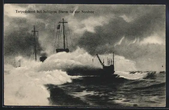 AK Torpedoboot bei heftigem Sturm in der Nordsee