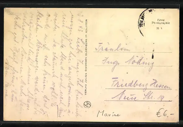 alte Ansichtskarte, gelaufen, Briefmarke entfernt, guter Zustand