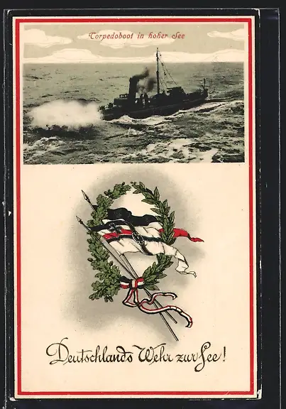 AK Torpedoboot in hoher See, Reichskriegsflagge