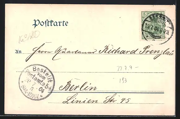 alte Ansichtskarte, gelaufen 1904, kleiner Einriss li. unten, guter Zustand