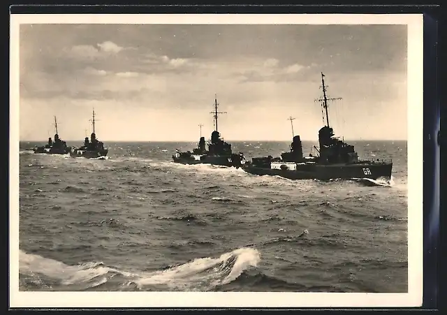 AK Torpedoboote in Kiellinie in voller Fahrt, Kriegsmarine