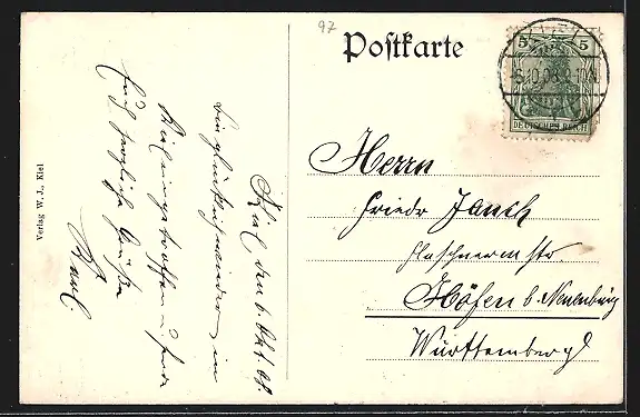 alte Ansichtskarte, gelaufen 1908, Eckknick li. unten, guter Zustand