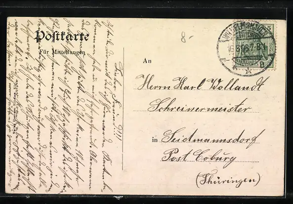 alte Ansichtskarte, gelaufen 1908, guter Zustand