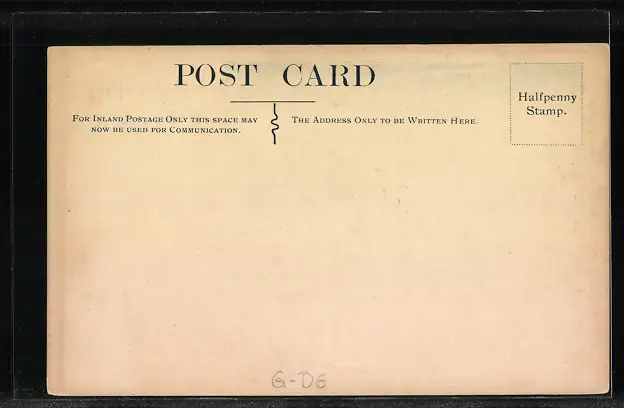 Personenbezogene Daten auf der Rückseite der Karte wurden durch blauen Textmarker unkenntlich gemacht. Die blauen Stellen sind auf die Vorderseite durchgeweicht und wirken sich negativ auf das Postkartenfoto aus