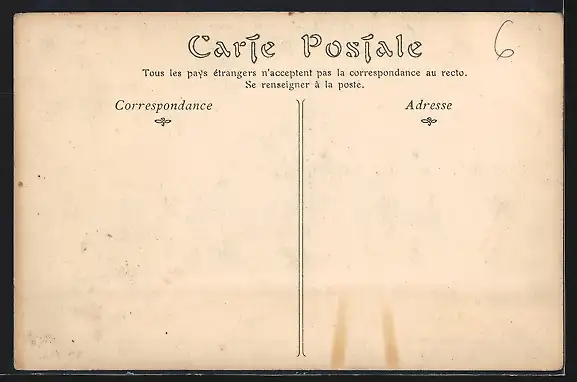 Personenbezogene Daten auf der Rückseite der Karte wurden durch blauen Textmarker unkenntlich gemacht. Die blauen Stellen sind auf die Vorderseite durchgeweicht und wirken sich negativ auf das Postkartenfoto aus