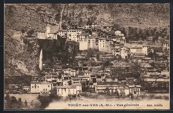AK Touët-sur-Var, Vue générale du village perché sur la colline