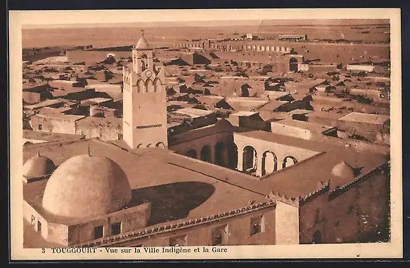 AK Touggourt, Vue sur la Ville Indigène et la Gare