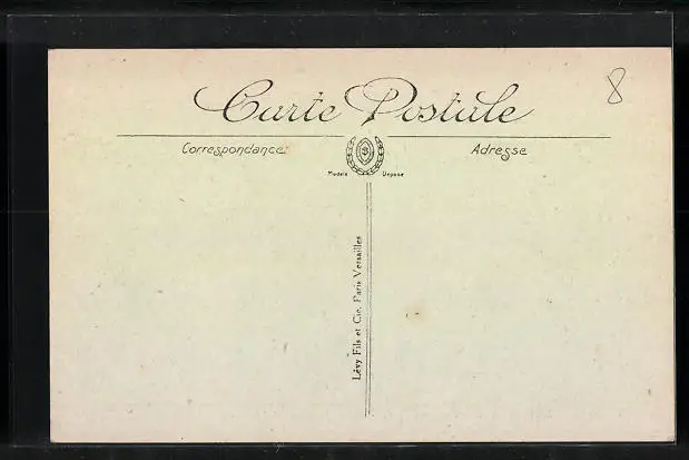 Personenbezogene Daten auf der Rückseite der Karte wurden durch blauen Textmarker unkenntlich gemacht. Die blauen Stellen sind auf die Vorderseite durchgeweicht und wirken sich negativ auf das Postkartenfoto aus