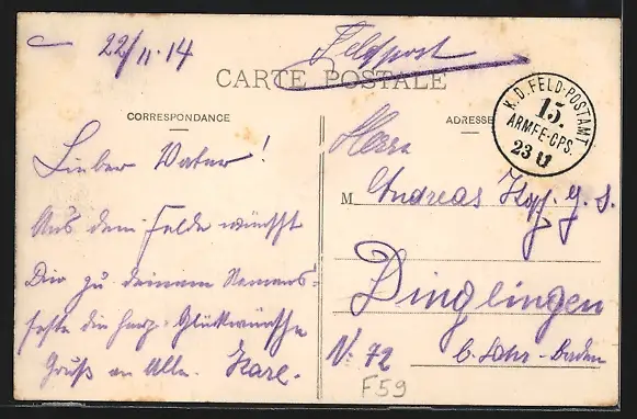 alte Ansichtskarte, gelaufen 1914, guter Zustand