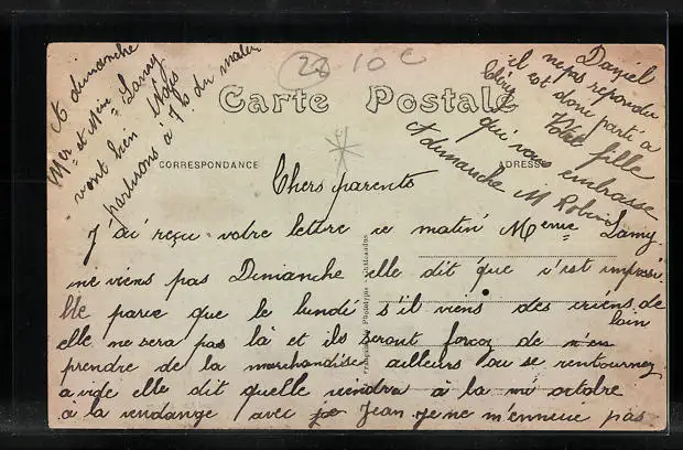 Personenbezogene Daten auf der Rückseite der Karte wurden durch blauen Textmarker unkenntlich gemacht. Die blauen Stellen sind auf die Vorderseite durchgeweicht und wirken sich negativ auf das Postkartenfoto aus