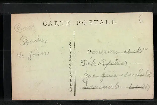Personenbezogene Daten auf der Rückseite der Karte wurden durch blauen Textmarker unkenntlich gemacht. Die blauen Stellen sind auf die Vorderseite durchgeweicht und wirken sich negativ auf das Postkartenfoto aus
