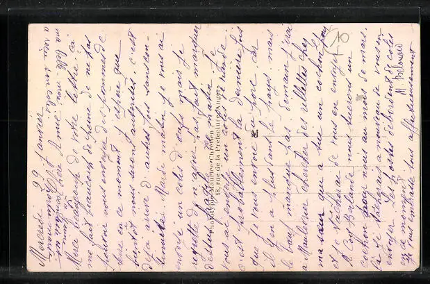 Personenbezogene Daten auf der Rückseite der Karte wurden durch blauen Textmarker unkenntlich gemacht. Die blauen Stellen sind auf die Vorderseite durchgeweicht und wirken sich negativ auf das Postkartenfoto aus