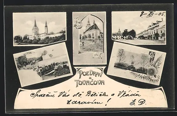 AK Tovacov, Ortsansichten, Kirche, Strassenpartie, Denkmal