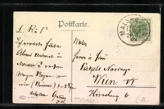 gelaufen 1908, Eckknick unten links, guter Zustand