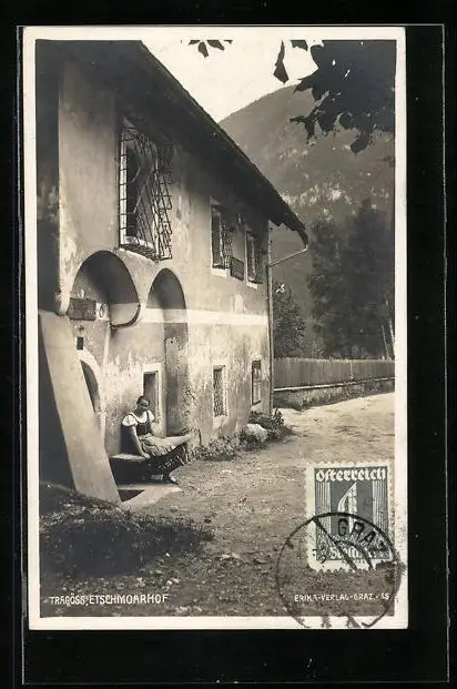 AK Tragöss, Partie am Etschmoarhof, mit Tragösserin