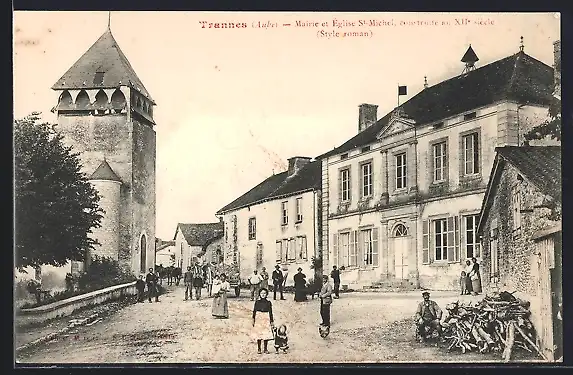 AK Trannes, Mairie et Église St-Michel, construite au XIIe siècle, style roman