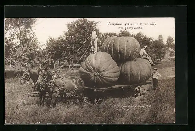 AK Transport von Riesenkürbissen auf einem Pferdewagen