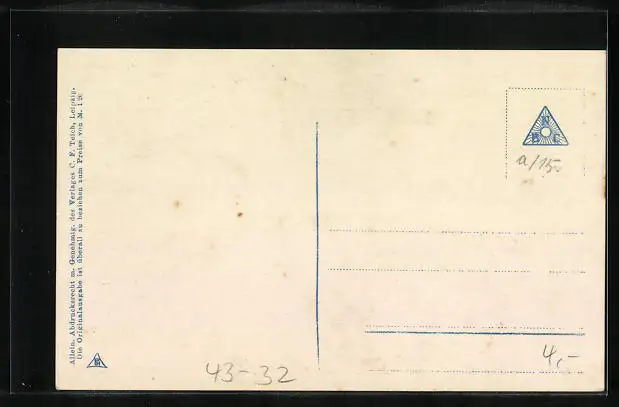 Personenbezogene Daten auf der Rückseite der Karte wurden durch blauen Textmarker unkenntlich gemacht. Die blauen Stellen sind auf die Vorderseite durchgeweicht und wirken sich negativ auf das Postkartenfoto aus