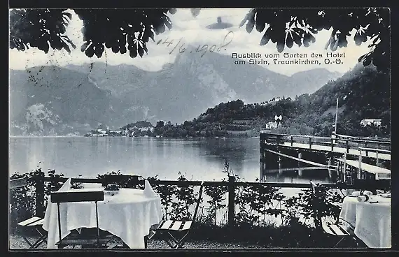 AK Traunkirchen, Ausblick vom Garten des Hotel am Stein