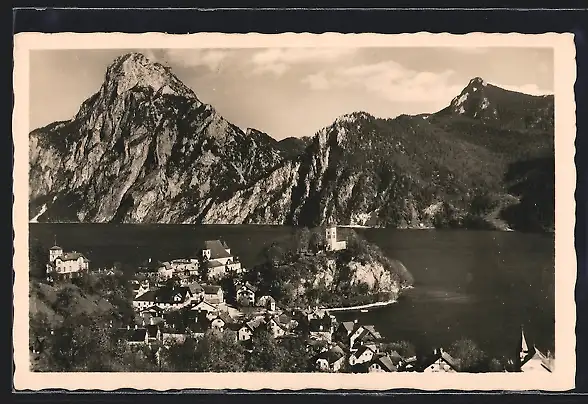 AK Traunkirchen, Ortsansicht mit Traunstein