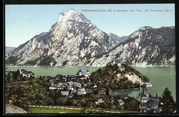AK Traunkirchen, Ortsansicht mit Traunstein