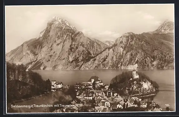AK Traunkirchen i. Salzkammergut, Ortsansicht mit Traunstein
