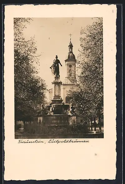 AK Traunstein, Luitpoldbrunnen mit Kirchturm