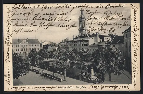 AK Traunstein, Maxplatz mit Kirche