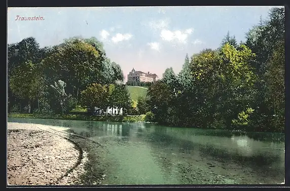 AK Traunstein, Ortsansicht mit Flusspartie