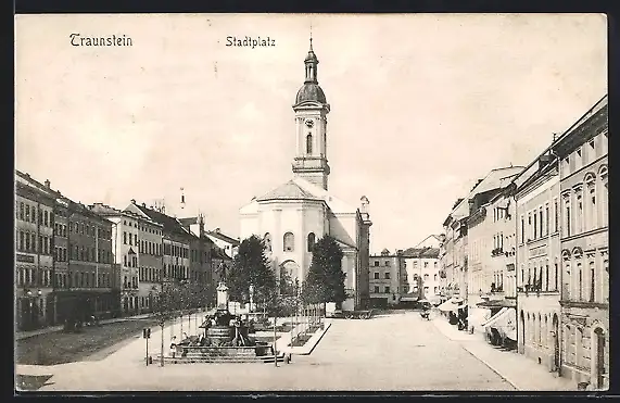 AK Traunstein, Stadtplatz, Kirche, Denkmal