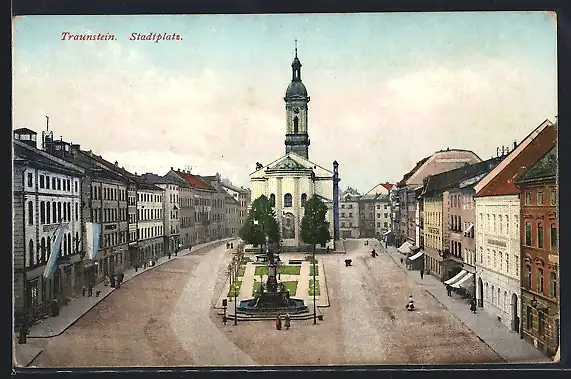 AK Traunstein, Stadtplatz mit Kirche