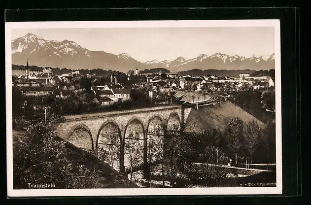 AK Traunstein, Teilansicht mit Bergen