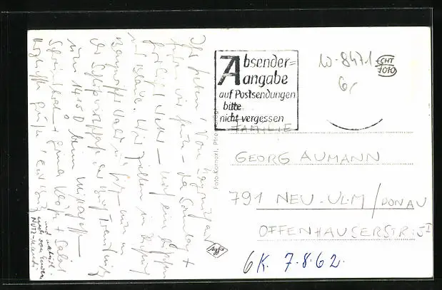 alte Ansichtskarte, gelaufen 1962, Briefmarke entfernt, guter Zustand