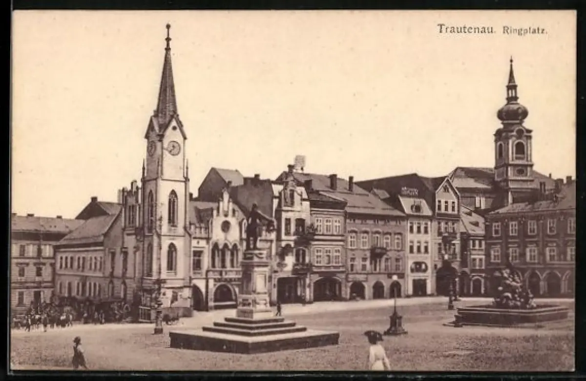 AK Trautenau, Ringplatz mit Denkmal