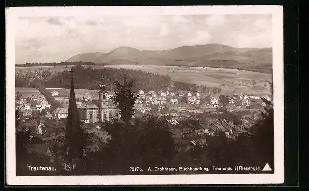 AK Trautenau, Teilansicht von einer Anhöhe aus